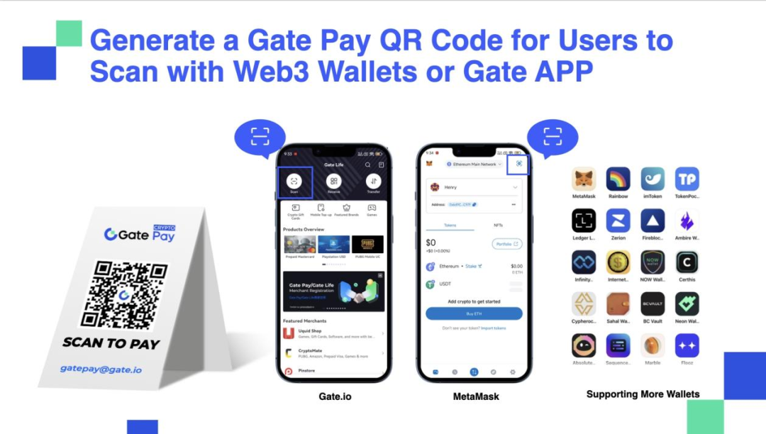 由此,GatePay 推出的加密货币支付网关旨在满足商家和个人用户对 Web 3 支付场景的需求。GatePay 已经接入多种支付场景,支持包括线上商城和线下商城的加密货币收支服务,用户可以便捷通过连接钱包/账户,通过二维码扫码支付等多种方式,连接 300 多个主流商家,超过 300 种加密货币可供选择。