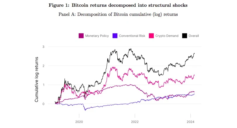 Uniswap Labs、哥本哈根商学院和 Circle 的研究人员联合撰写论文《What Drives Crypto Asset Prices?》中,通过 VAR(结构向量自回归)模型将比特币历年的价格走势和三种机构性冲击影响进行数据分析,揭露比特币的市场表现,显示出其作为价值存储工具和投机性资产的双重特性,本文技术内容较多,Odaily星球日报特将简化版内容整理,以供读者参考。