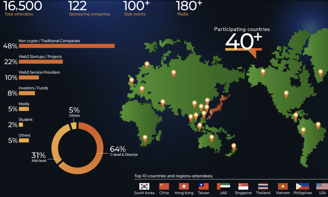 - 可进入 Web3 行业以外的 180 多家公司的展区