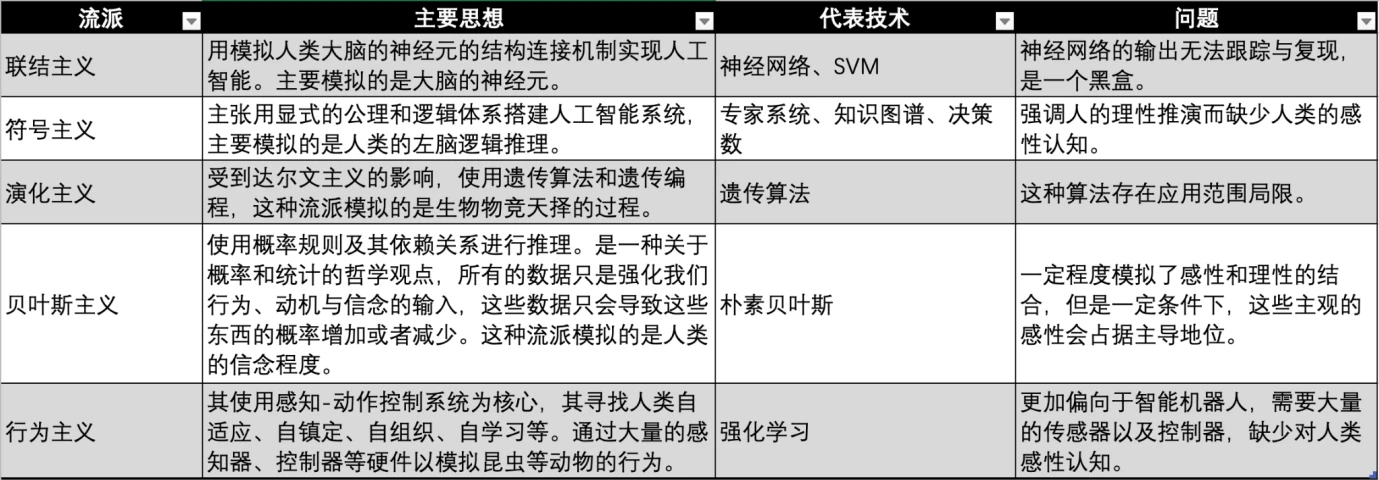 目前机器学习有三大主要的流派,分别是联结主义、符号主义和行为主义,分别模仿人类的神经系统、思维、行为。