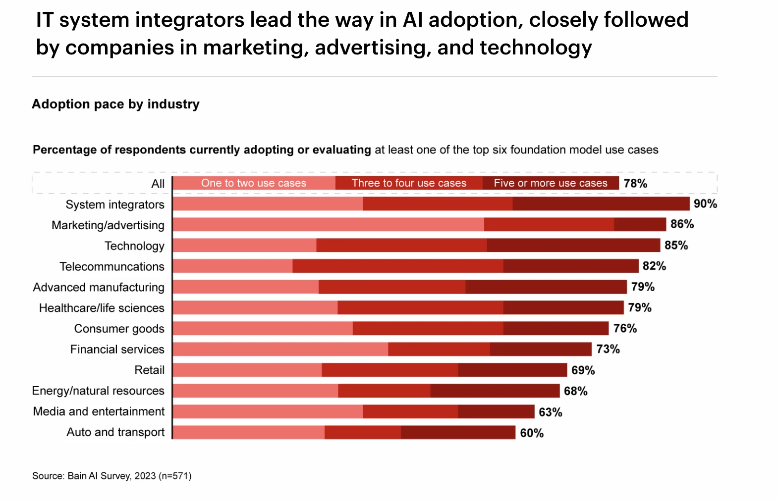 各行业 GPT 的采用率排名,Source: Bain AI Survey