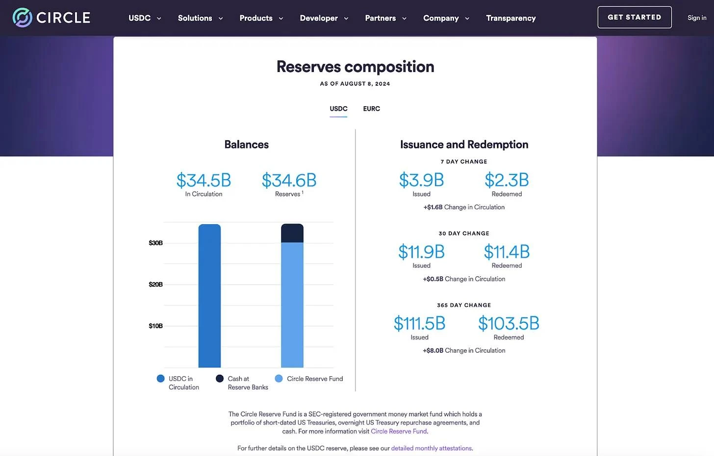 Circle 的储备组成,访问时间: 2024 年 8 月 8 日