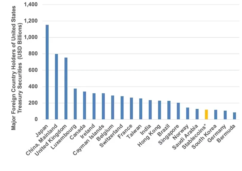 因此, 美国国会在稳定币立法方面采取行动的动力非常强烈 。像 USDC 这样的受监管美元计价稳定币可以大大推动美国在数字资产领域的利益。USDC 的储备要求意味着对美国国债的需求将始终存在。截至 2024 年 6 月,稳定币是美国债务的第 18 大债权人,持有的国库券数量超过了韩国或德国。随着对稳定币和数字资产的需求不断增长,这一数字只会增加。换句话说,对美元计价稳定币的需求直接转化为对美元和美国国债的需求。因此,国会必须增加数字资产领域的监管透明度,以进一步增强美元在数字时代的力量。
