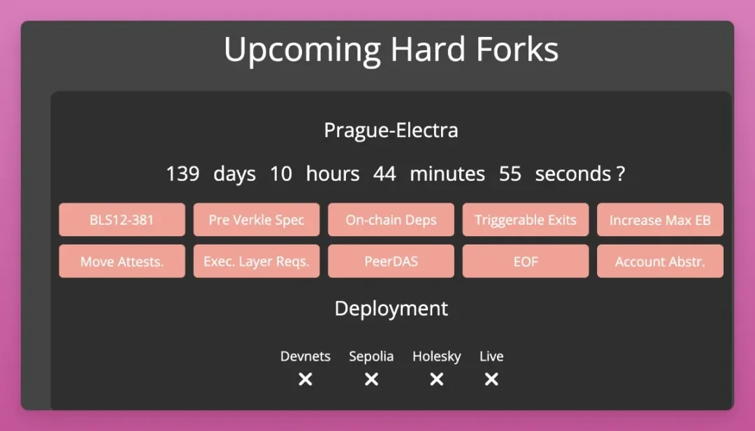 我明白原因所在。以太坊发生了重大变化:从 PoW 迁移到 PoS、ETH 销毁启动和 EIP-4884 等。然而 Pectra 有一些很酷的升级。