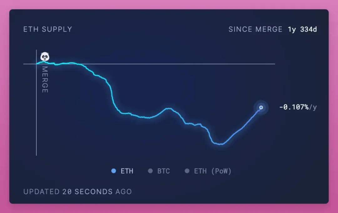 在 EIP-4884 Proto-danksharding 升级之后,L2 支付的费用下降,导致 ETH 销毁量降低。尽管 ETH 通胀率仍低于 1% ,但对于那些看好 ETH 作为超声波货币的人来说,它失败了。
