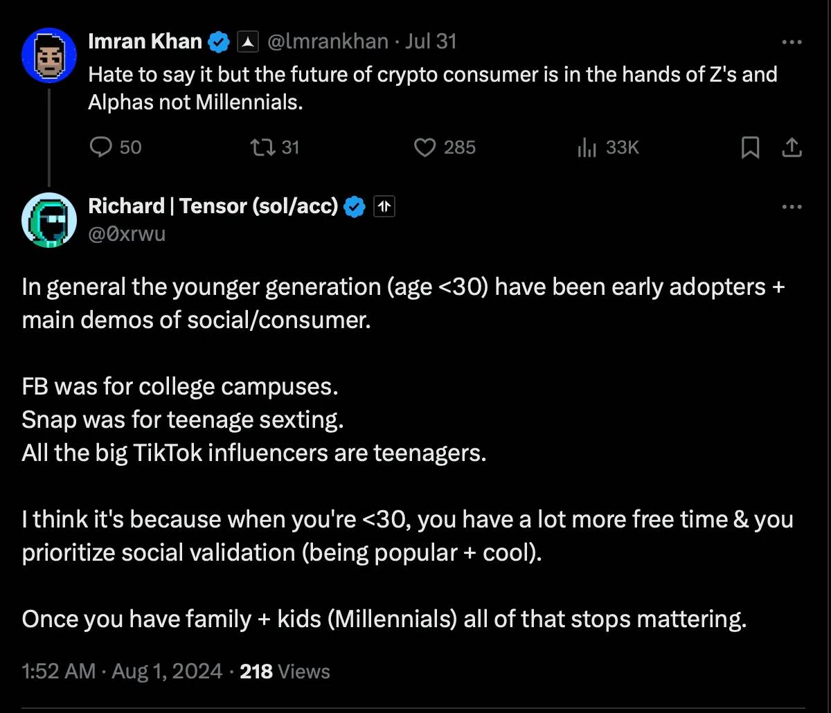 Imran Khan: 我不想这么说,但加密消费的未来掌控在 Z 世代和 Alpha 世代手中,而不是千禧一代。