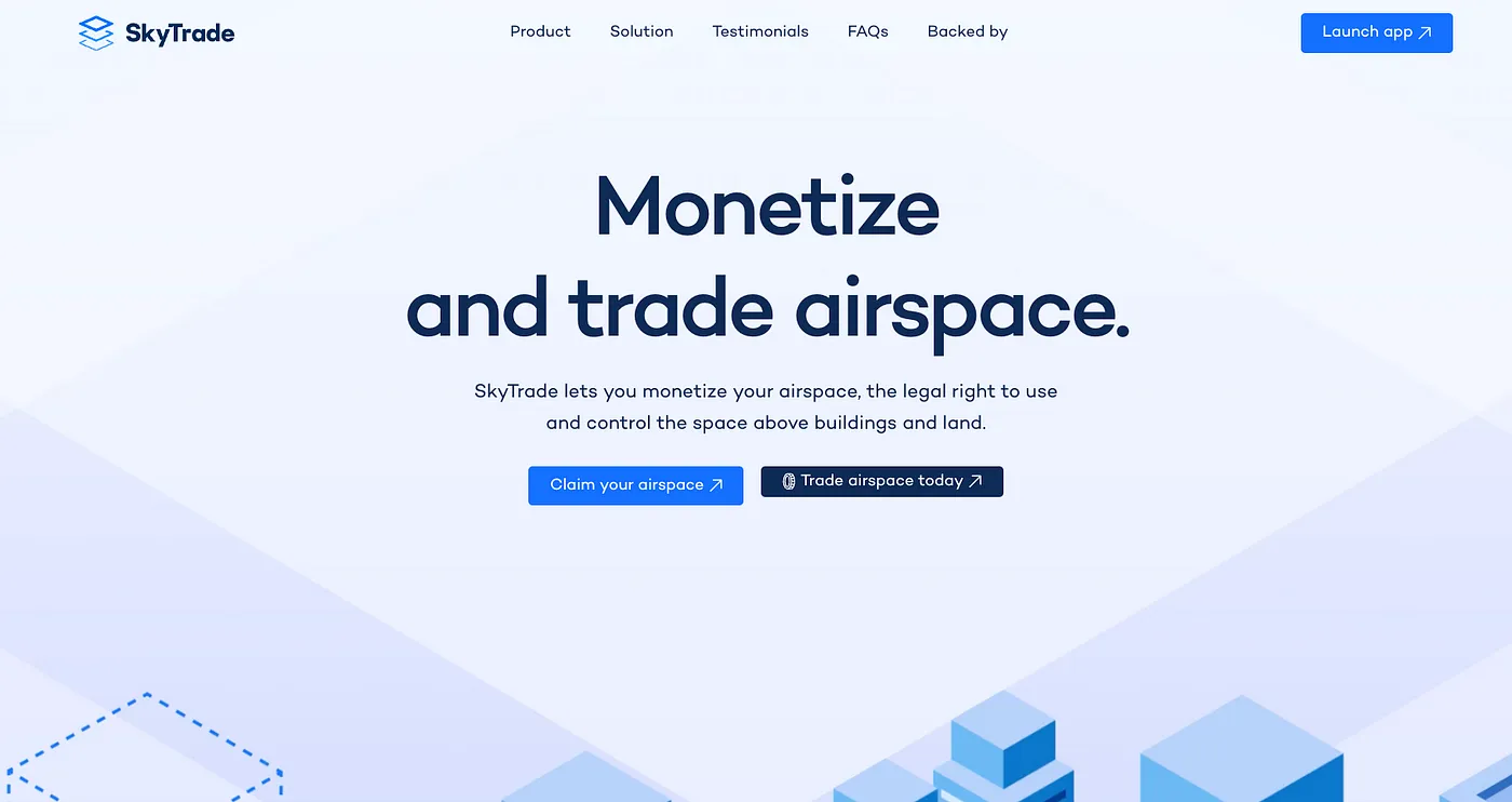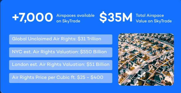 Skytrade 使人们能够拥有自己房屋上空的空中权利,无人机操作员可以购买该房屋的代币化空中交易,从而使他们能够参与这个可进入的市场。尽管仍在起步阶段,Skytrade 已在其平台上实现了超过 3000 万美元的空域交易。