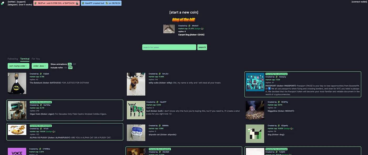 “一群真实的人类和机械机器人争相捕捉趋势和事件,然后将其代币化,希望能实现飞跃。使用得当, pump.fun 的终端超越了 Twitter 的趋势标签。”
