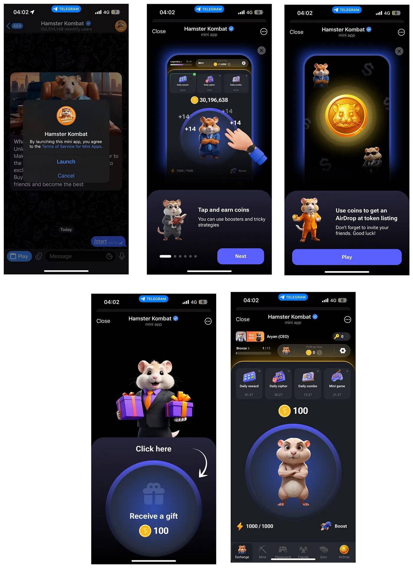 Hamster Kombat — 一个游戏应用,你可以管理一个虚拟的加密交易所,并在 Telegram 中培养你的仓鼠。