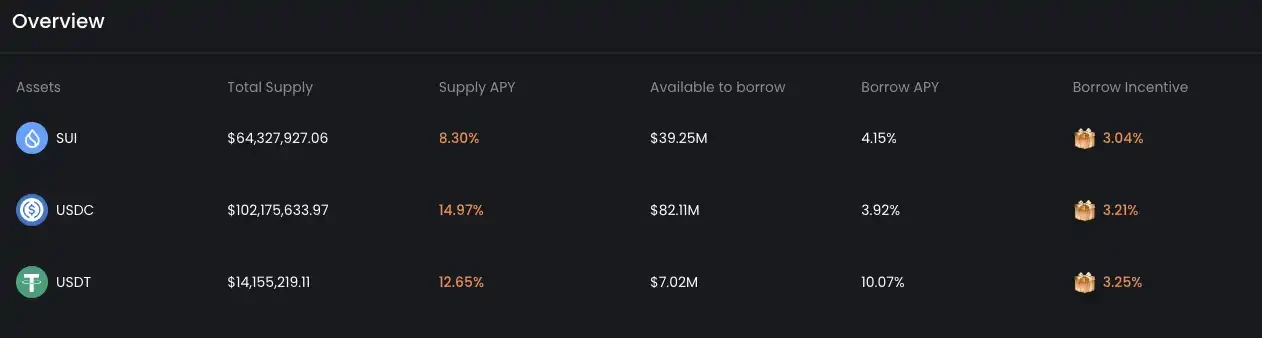 作为近期热门的 Sol Killer,除了技术发展以外,Sui 对推进自身网络的 DeFi 发展一直没有停歇。作为 Sui 网络上最大的借贷平台,NAVI 上的 USDC 目前 TVL 超 1 亿美元,且提供了 14.9% 的 APY 收益,同样的,其中大部分收益来自于 Sui 对用户的激励。