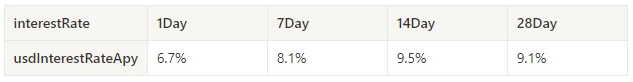 过去一周 USD 放贷年化收益平均为 8.1% ,短期利率维持在 6.7% 。