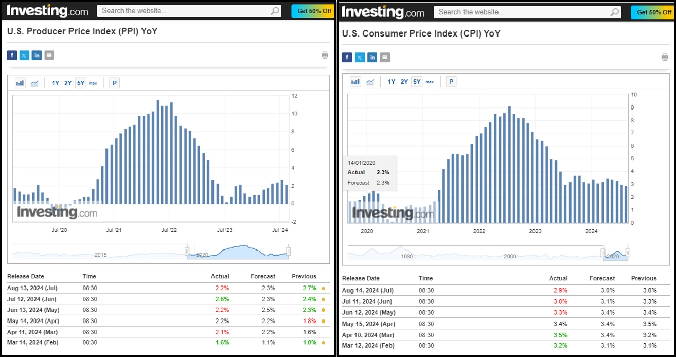 数据方面: PPI 数据作为生产者通胀指标,显示 7 月份价格仅上涨 0.2% ,同比上涨约 2.2% 。这个数字现在非常接近美联储 2% 的目标,表明市场对央行开始降息的预期基本上是符合目标的。