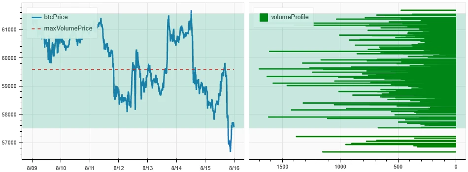 上图是 BTC 过去一周的密集成交区分布图