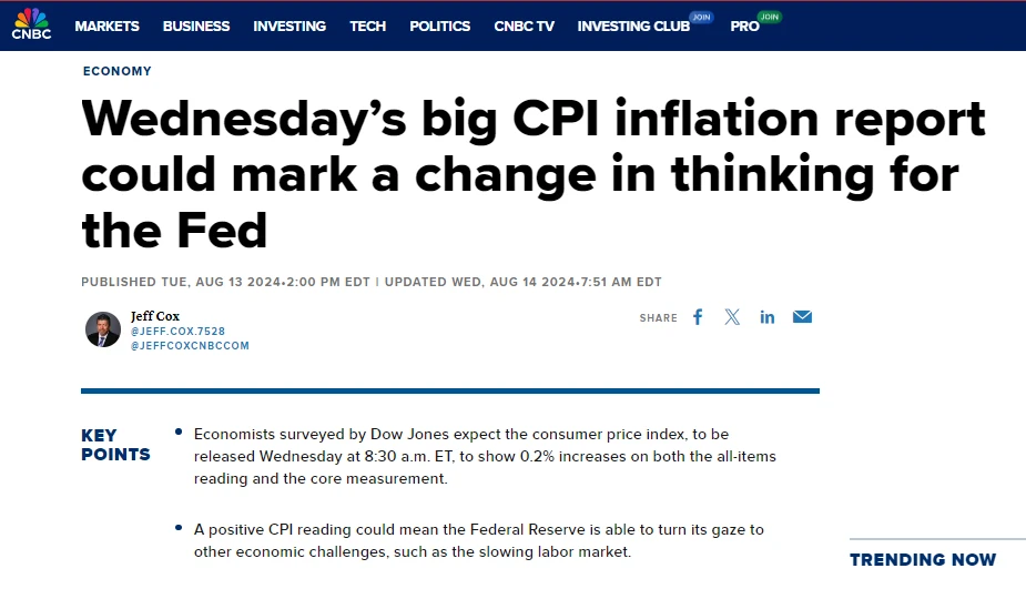 图片来源: https://www.cnbc.com/2024/08/13/wednesdays-cpi-report-could-mark-a-change-in-thinking-for-the-fed.html?&qsearchterm=CPI