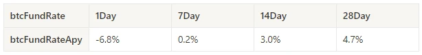 过去一周 BTC 资费平均年化收益为 0.2% ,合约杠杆情绪在持续下降。
