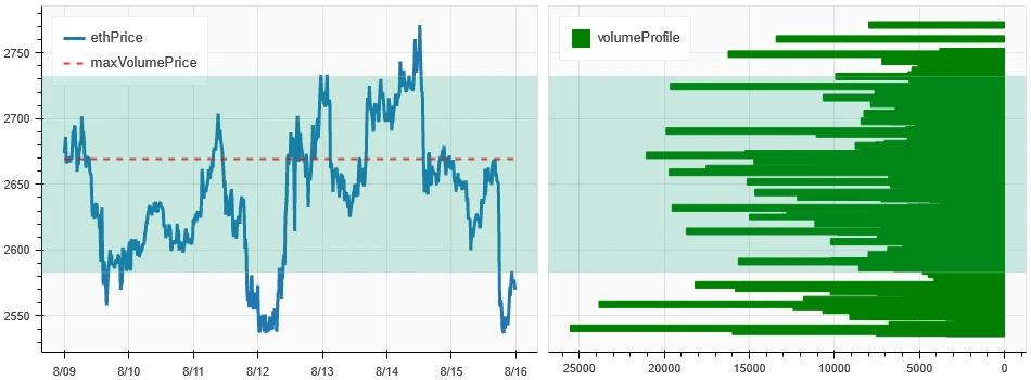 上图是 ETH 过去一周的密集成交区分布图