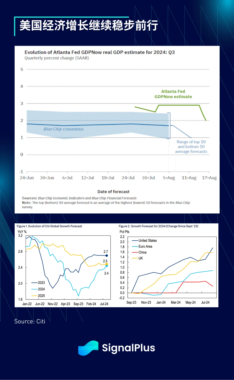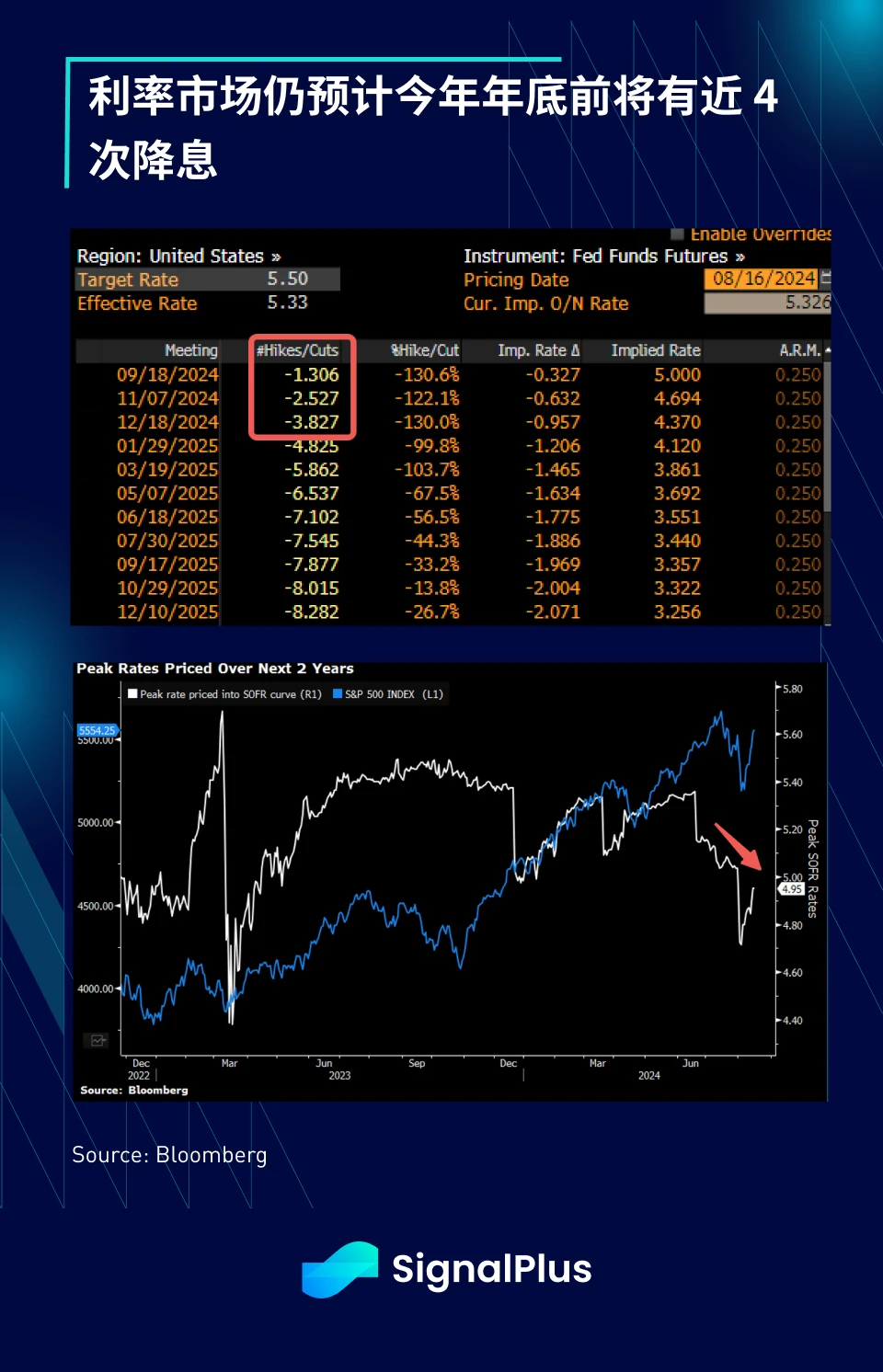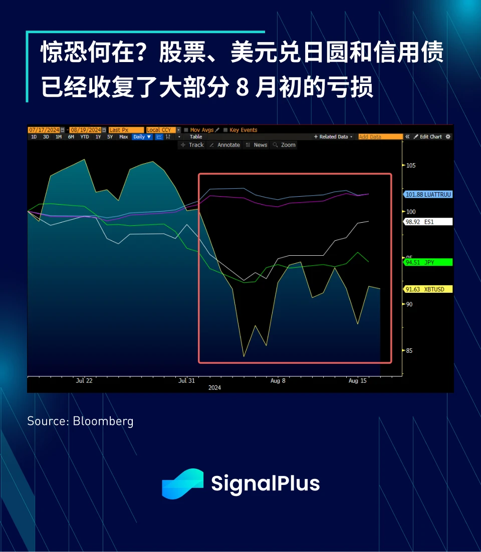 不同的是,与 7 月相比,市场对于美联储降息的预期已经发生了变化,市场仍然预计年底前将降息近 4 次, 9 月降息 50 个基点的可能性为 30% ,然而,由于市场快速恢复,加上经济数据依然强劲,美联储不像两周前那样面临巨大的鸽派压力,市场随著资产价格回到等待更多数据的状态而进入真空期。