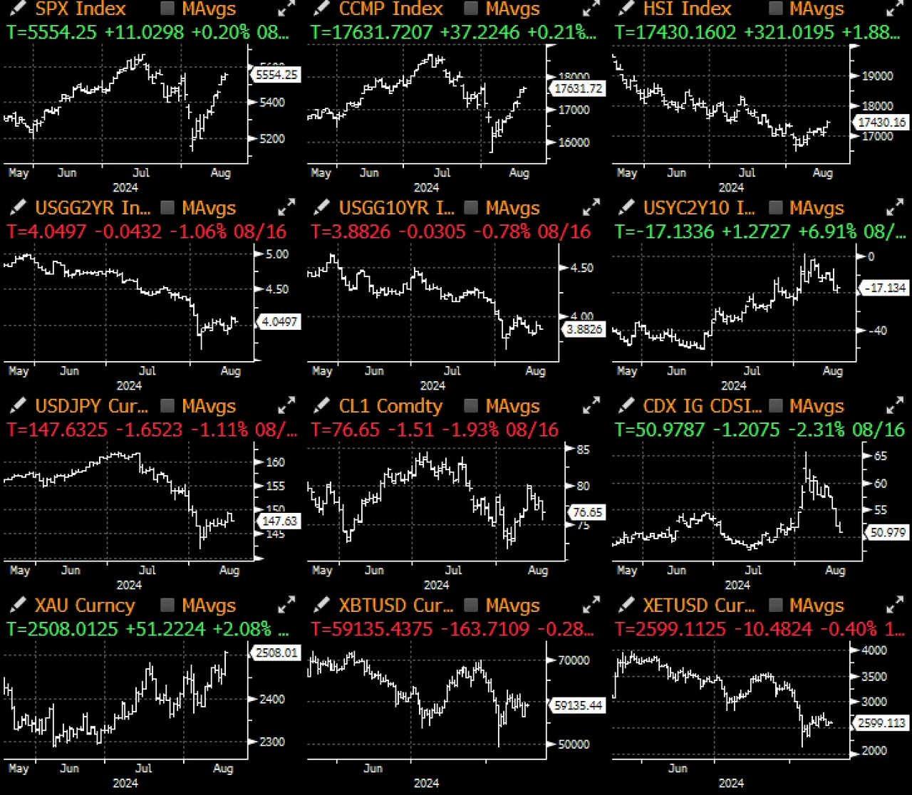 经历了月初的动荡后,市场似乎什么都没发生一样进入了下半月。由于零售销售数据强劲、失业救济申请人数下滑以及企业财报表现不俗,经济衰退的担忧已大幅消退,市场重新进入“软著陆”模式。