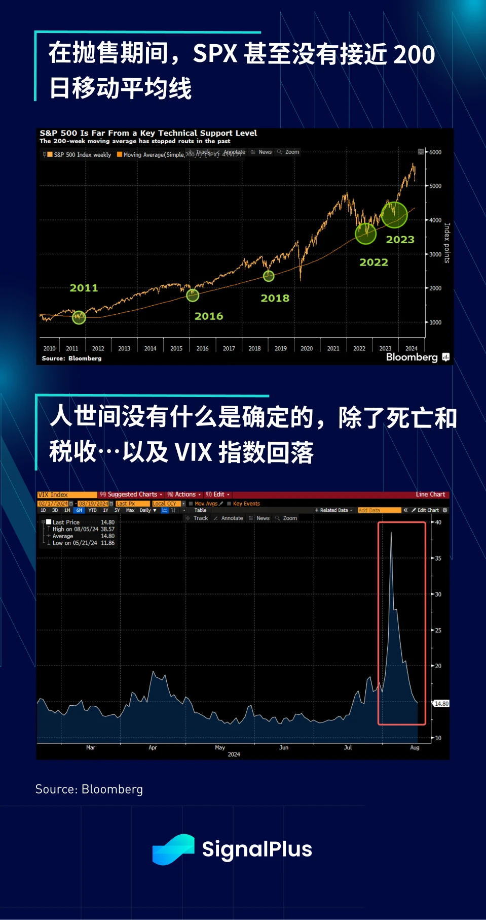 此外,花旗对于市场头寸的估计证实, 8 月市场的去风险行为主要由对冲基金主导,其头寸在随后的逢低买入中被“多头 (Long-only, LO)”基金所接管。如果将时间范围拉长,这个下跌的瞬间波动在 SPX 长期图表上几乎不会被注意到,波动率指数(VIX)在不到一周的闪现后已经回落至今年常见的区间。