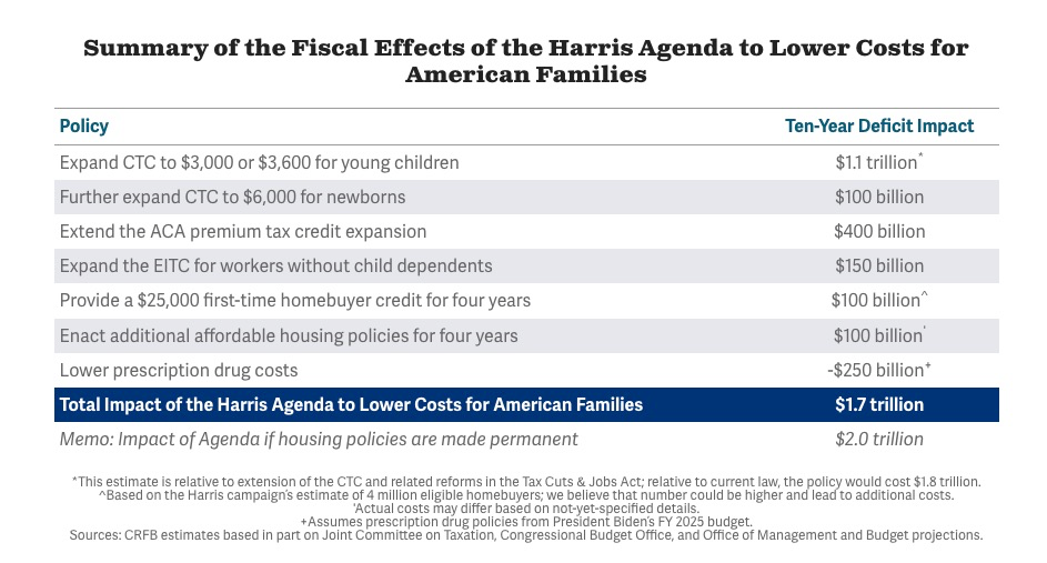 哈里斯的首个经济政策文件《降低美国家庭成本议程》—— 1.7 万亿规模的补贴计划