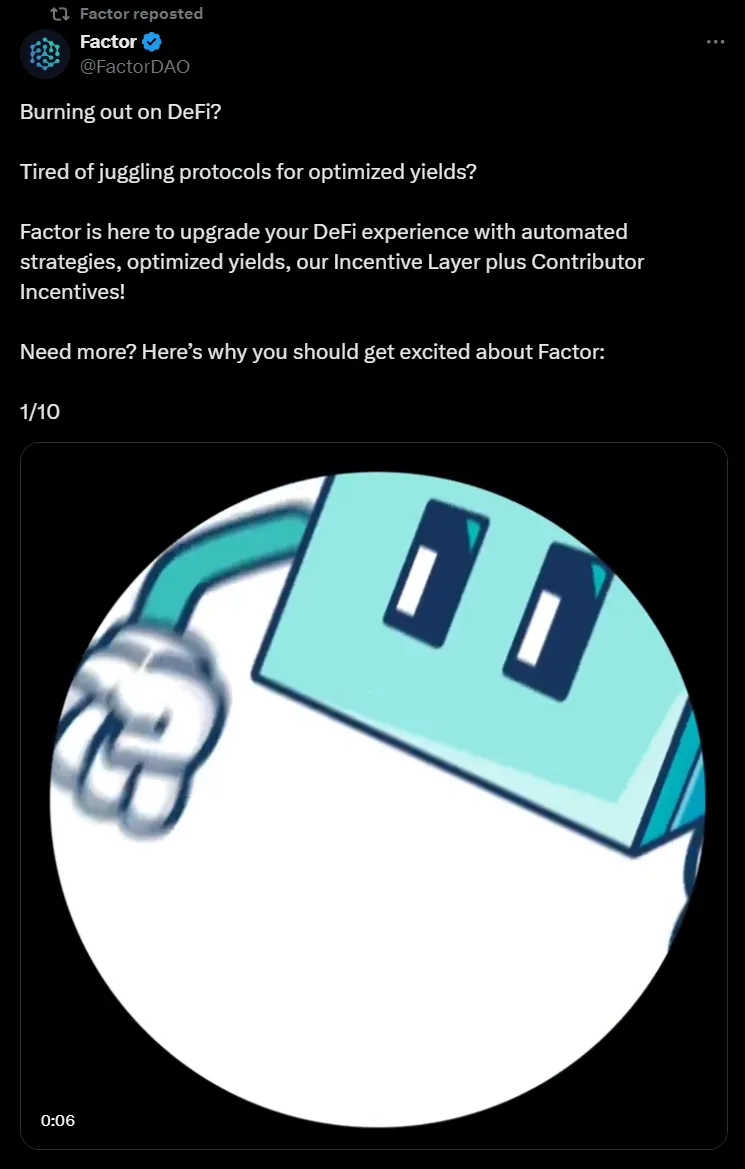 接下来介绍的是 Factor,一个可组合的 DeFi 层,旨在增强和简化收益的获取。