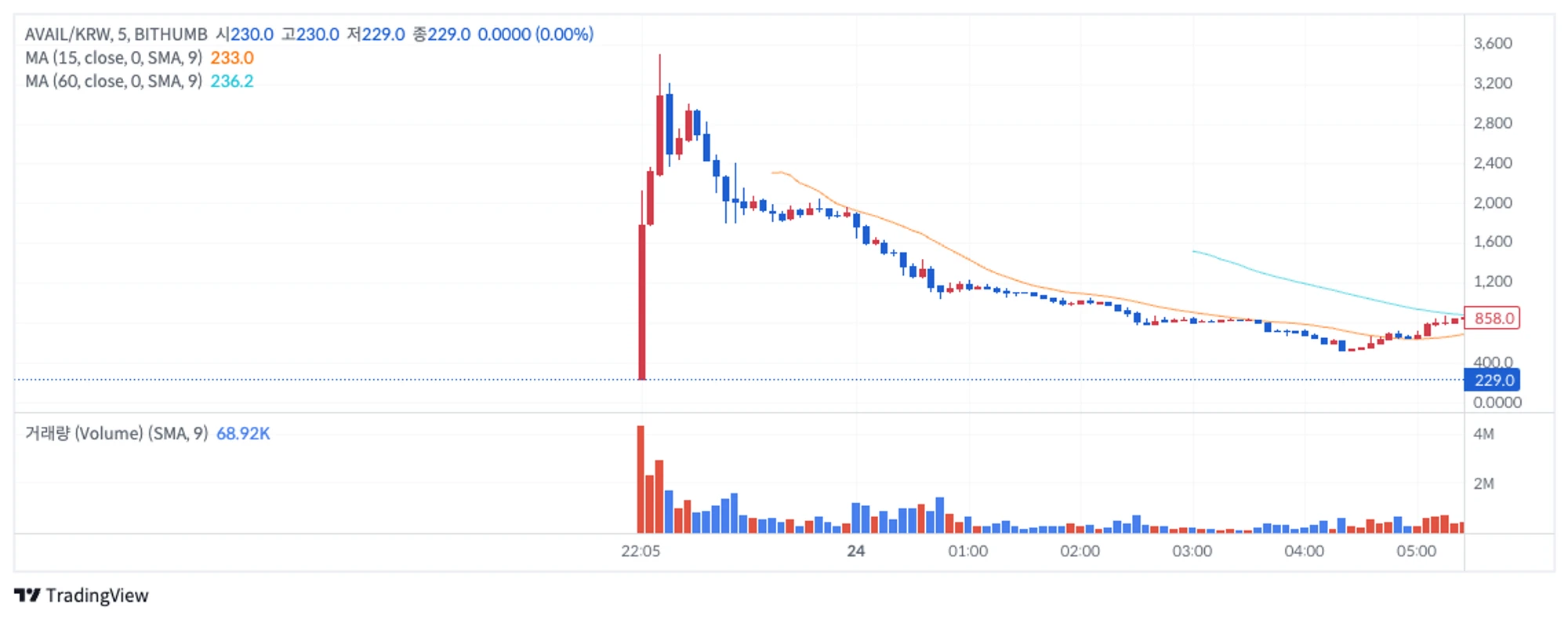 AVAIL 在 Bithumb 和 Bybit 之间的最大价格差异达到 1, 335% 。 一名用户通过 X 平台从无法进入韩国交易所的海外投资者那里购买了大量 AVAIL,然后在 Bithumb 上批量出售以获取巨额利润。