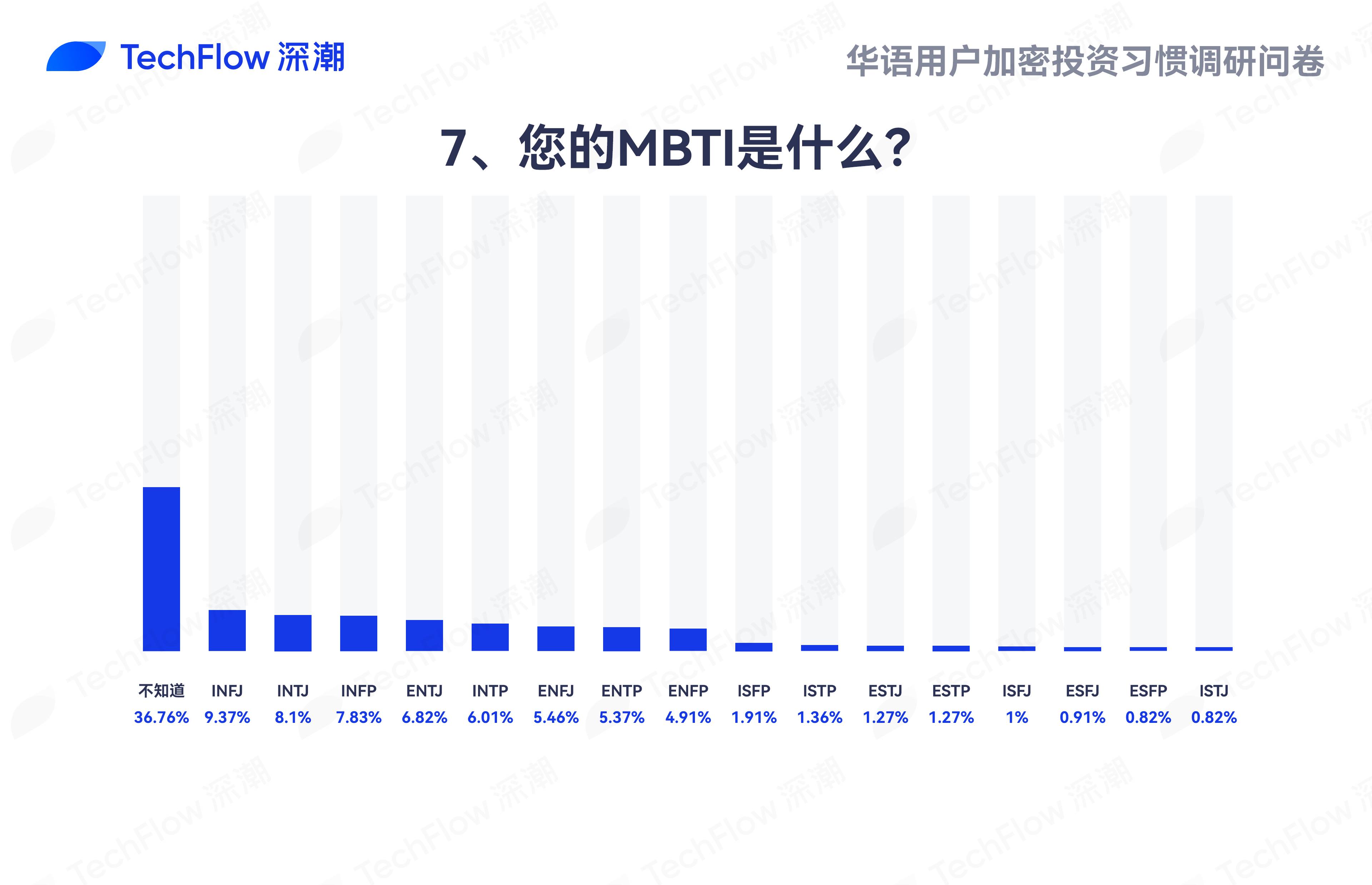 36.76% 的受访者不知道自己的 MBTI 类型。这表明尽管 MBTI 在加密行业内有一定的普及度,但仍有相当一部分用户尚未进行相关的自我测评。