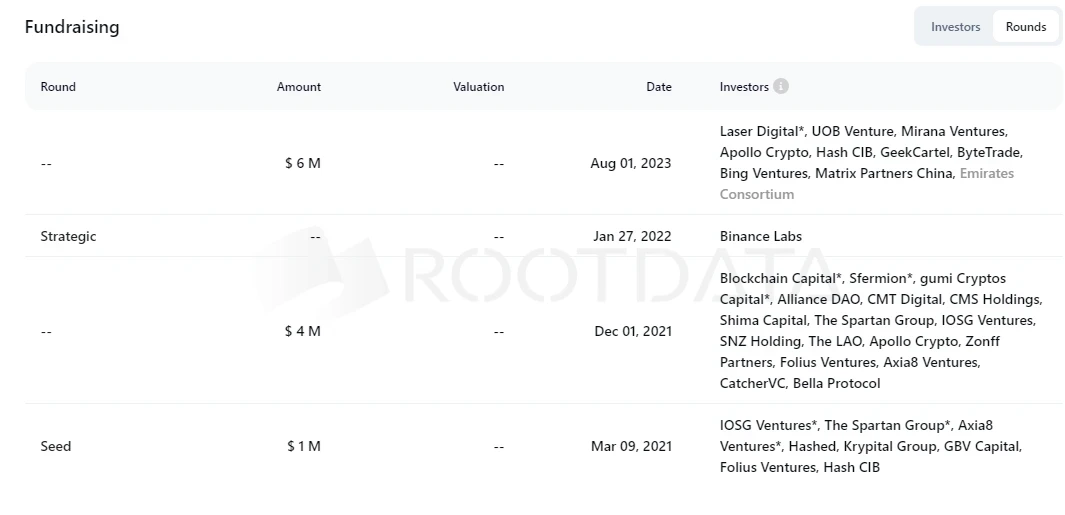 根据 ROOTDATA 数据显示 , 目前,BOB 已完成二次融资,总金额近 1200 万美元, 分别为: