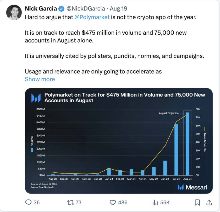 ETH 今年继续找到杀手级应用,@polymarket 就是一个很好的例子。这种情况只会继续,等到下一个「DeFi」显现时,价格已经反映了现实——市场是前瞻性的。