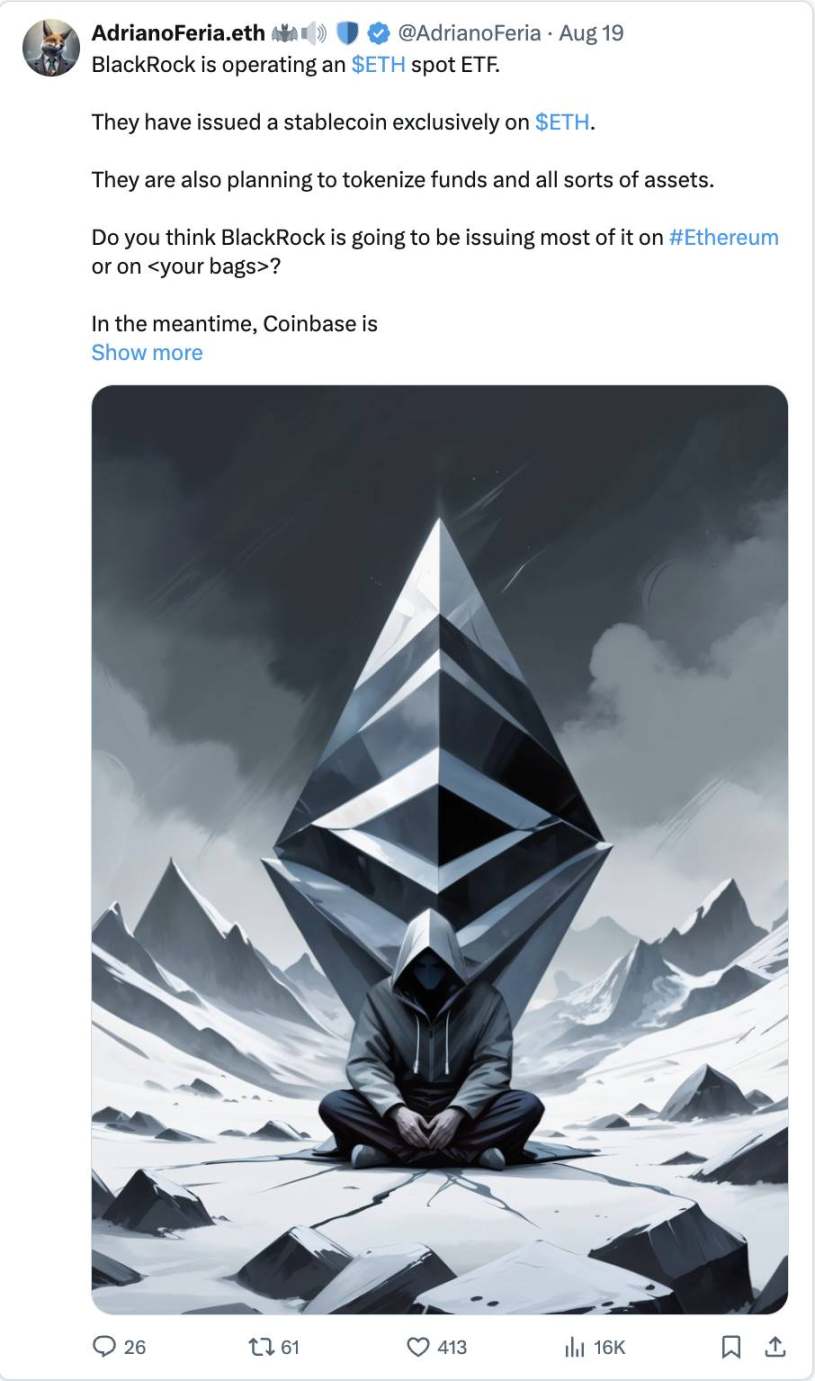 ETH ETF 的推出是在与比特币完全不同的市场环境中进行的,且遭遇了糟糕的价格表现,这让潜在投资者感到失望。目前,政治和机构的关注主要集中在 $BTC 上,但随着比特币被越来越多的人接受,大家会开始问:「接下来是什么?」$ETH 无疑是这个问题的显而易见的答案。