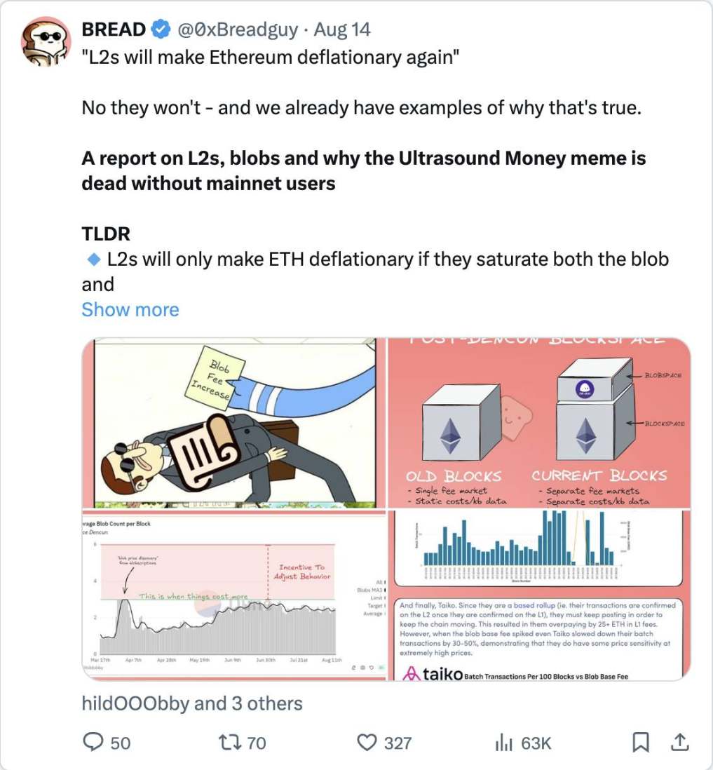 关于 L2、blob 以及为什么 Ultrasound Money 的概念在没有主网用户的情况下已经失效的报告。