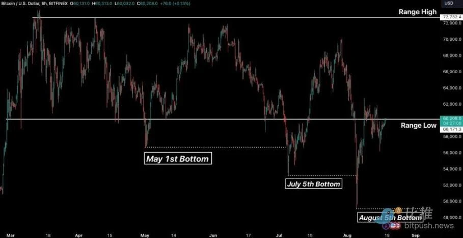 Bitfinex 分析师认为,市场正在逐步回暖,在 8 月初出现大量资金流出后,与以太坊 ETF 不同,比特币现货 ETF 上周净流入 3240 万美元,表明被动投资者的兴趣持续存在,BTC 价格多次突破约 60,000 美元的区间低点。