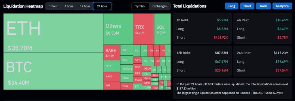 过去 24 小时全网爆仓 1.17 亿美元