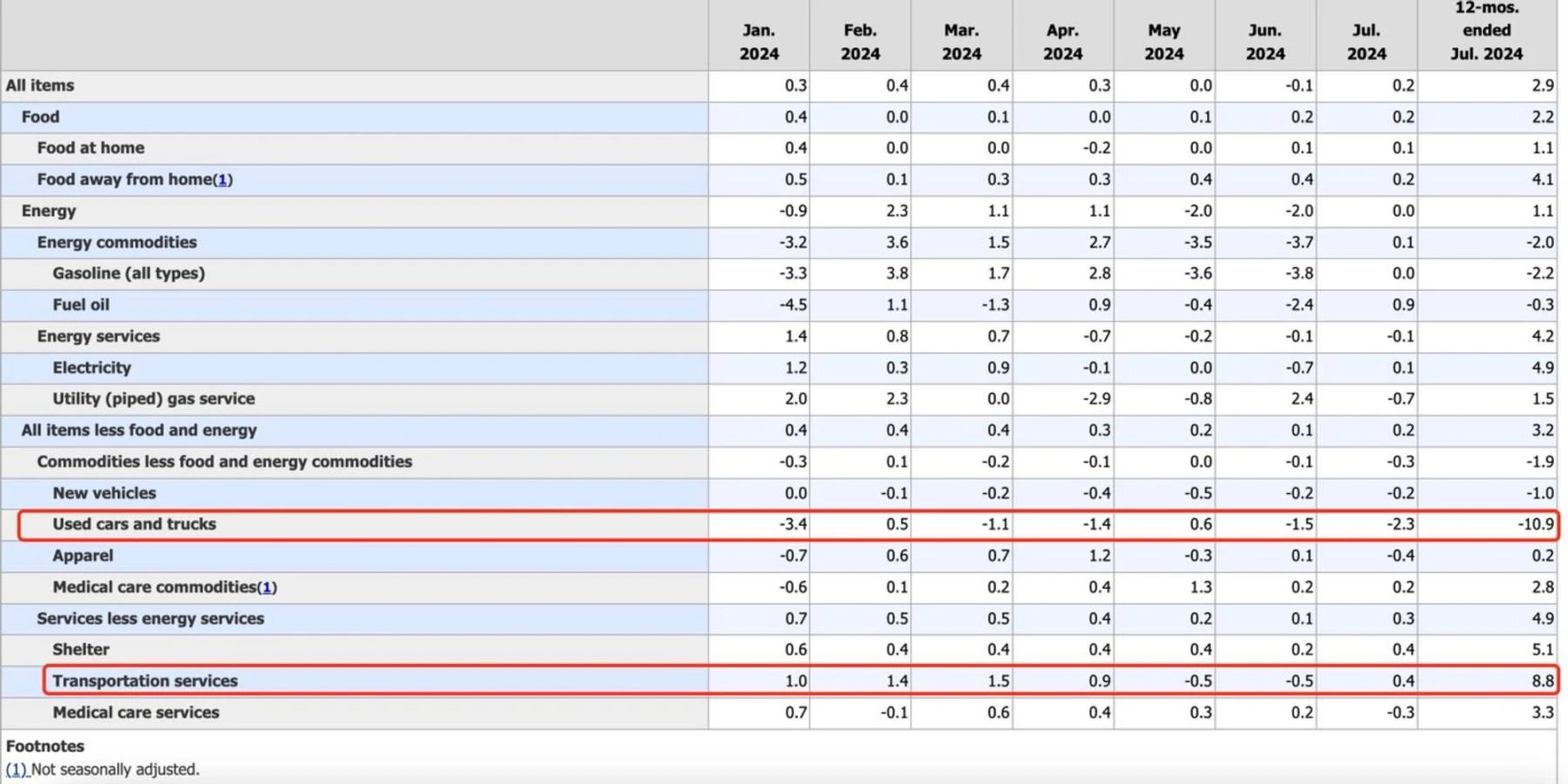 上周的 CPI,PPI,零售数据,PMI 数据都非常「恰好」的符合市场的预期,打消市场衰退的预期,同时保持美联储的降息预期。但是我们看到数据的巧合中的「不合理」。比如 PPI 数据,在能源和上月保持不变的情况,能源同比上涨 2% 左右,虽然可以用出口和政府购买解释,但是 CPI 的二手车分项(-10.9% )不符合正常逻辑。
