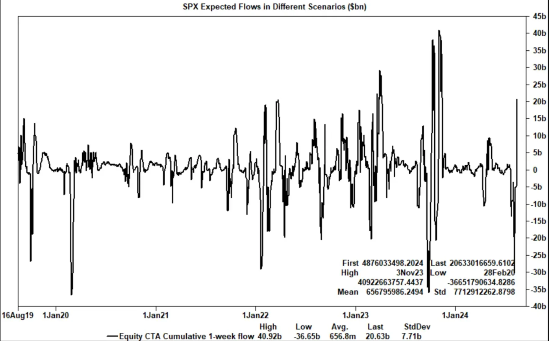 CTA 量化买盘也推动巨量流动性入场,并且短期预计 CTA 将会买入超过 600 亿的股票, 300 亿会流入美股,强劲的买入需求会推动市场进一步上涨。根据高盛的 Scott Rubner 统计数据,在过去三周内,交易商的 Gamma 变化了 160 亿,长期头寸转为短期头寸,再转为长期头寸,交易商的伽玛不再是短期的,未来会作为市场的缓冲。