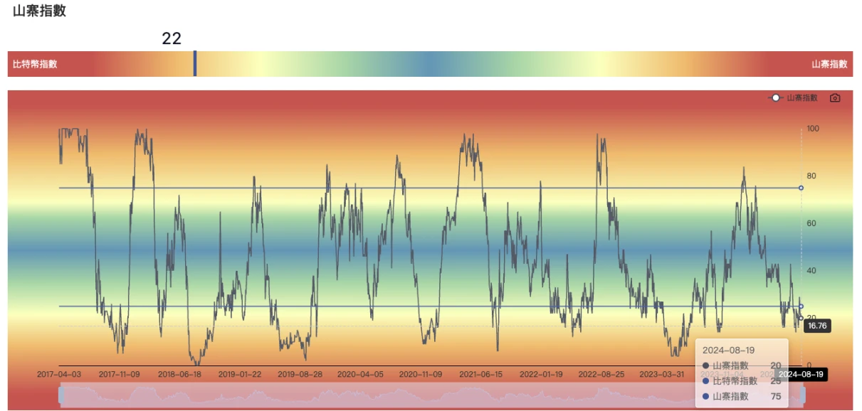 这轮 BTC.D 指数在持续上涨,而每轮牛市的中后期通常都会有 BTC 流动性溢出,而从 BTC.D 来看,目前还没出现 BTC 资金流入 Altcoin 的情况。