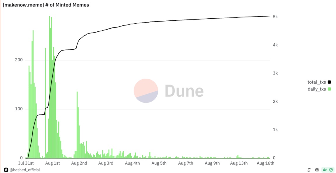 MakeNow.Meme 作为新的发行平台,虽然现在热度低迷,但刚推出时引发了极大热潮,一时间名人币纷纷爆发。其上一天发行了超 2600 个 Memecoin ,收益超 230+ SOL 。MakeNow.Meme 的发行机制相较于 Pump.fun 来说,不仅是对资产发行方式的再简化,也为做市模型提供了新的方向。