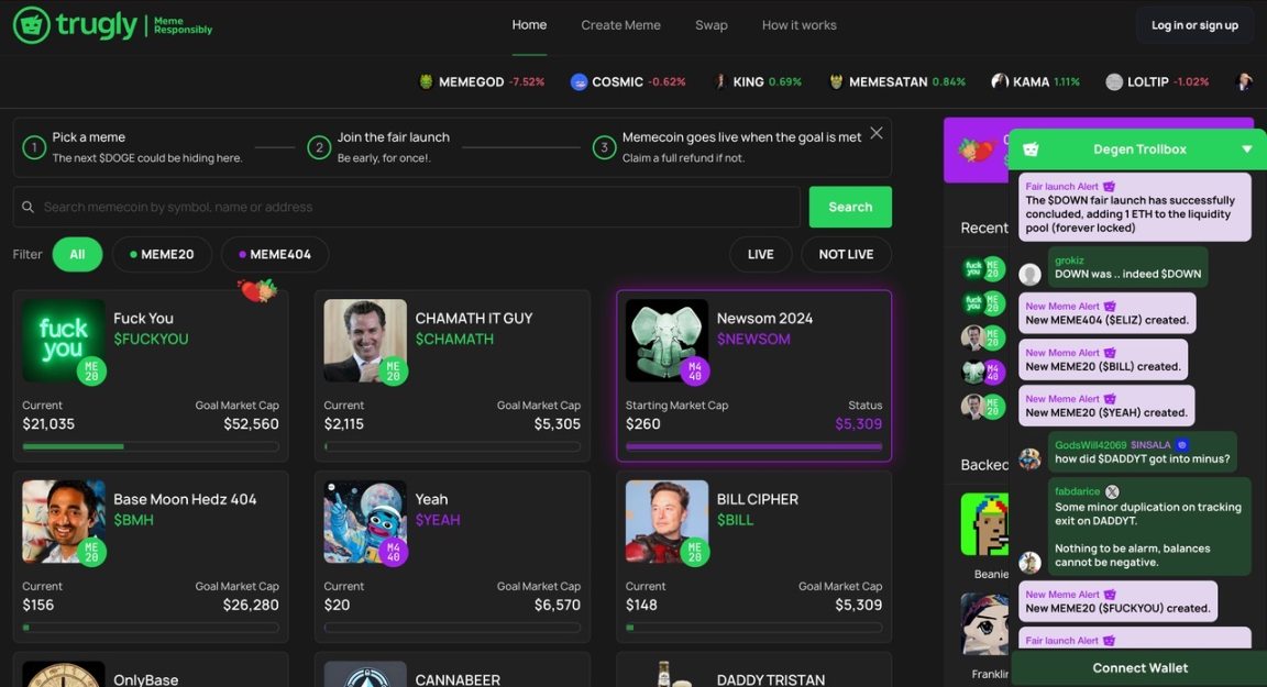 Trugly.meme 作为一个 Memecoin 发行平台,其资产发行机制相比 Pump.fun 没有太多不同,但其资产玩法更加多样。推出的 MemeX 允许任何人为 Twitter 帐户创建 memecoin,只有帐户所有者可以认领 MemeX memecoin。认领后会将 80% 的交易费转移给帐户所有者。其次,它采用了 MEME 404 代币标准,允许 memecoin 持有者通过 NFT 显示余额,解锁不同的级别。MEME 404 具有内置机制,可以根据 memecoin 余额的变化自动铸造和销毁 NFT,确保等级更新。