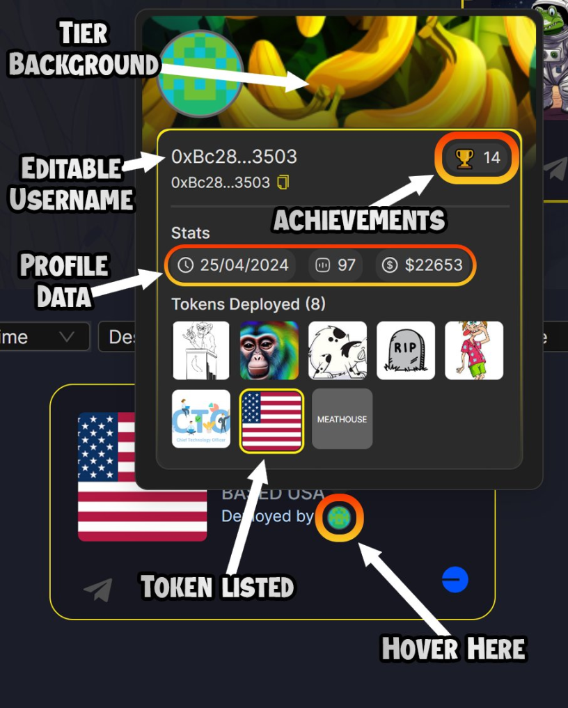 Ape.store 和 Pump.fun 在功能和界面上几乎没有不同。Dev 创建代币(除 gas 费外免费)达到 69 K 的市值后,将自动以相同价格在 UNISWAP 上市,然后立即销毁 LP。在 Pump.fun 宣布更新后,它也立刻在推特宣布,「从现在起至 2024 年 8 月 31 日,将向任何在其上启动项目并登陆 UNISWAP 的开发者赠送 0.1 ETH。」与 Pump.fun 不同的是,该平台根据交易额,邀请人数等有着明确的排行榜制度,隐有发币预期。