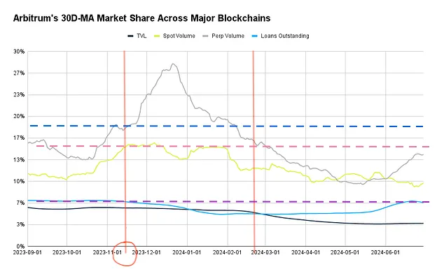 那么我们可以从以上所有内容得出什么结论呢?基本上,Arbitrum 花费了 8500 万美元用于这些其他业务,以提升它们的供给方指标(这显然有效),但由于没有相应的需求来吸收这些 TVL 和更紧的流动性,这些努力变得毫无用处。从本质上讲,你可以说这笔钱都被浪费掉了,给了那些追逐短期利益的农民。至少某些协议的 TVL 更高,代币价格也更高,使得一些人在这个过程中变得更富有。