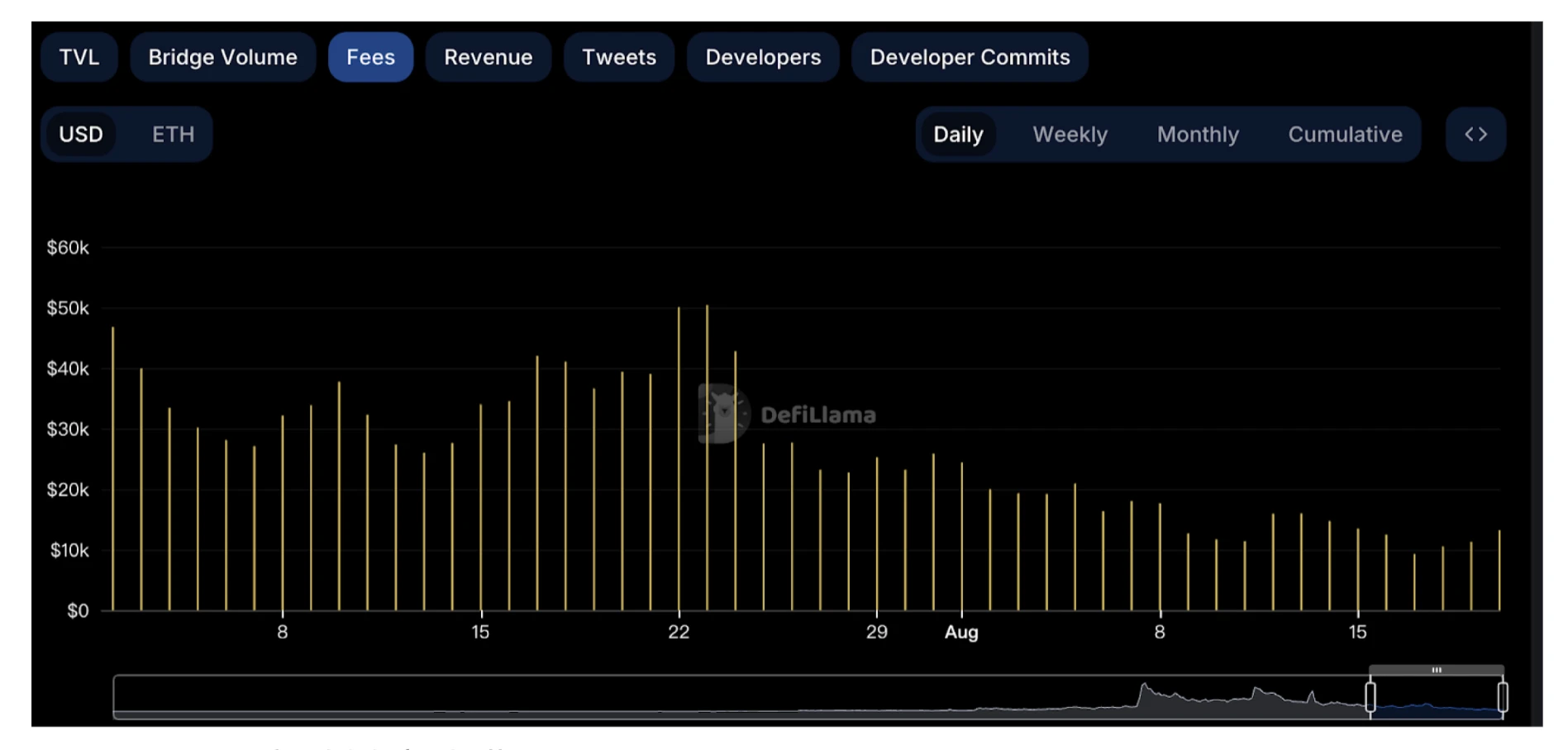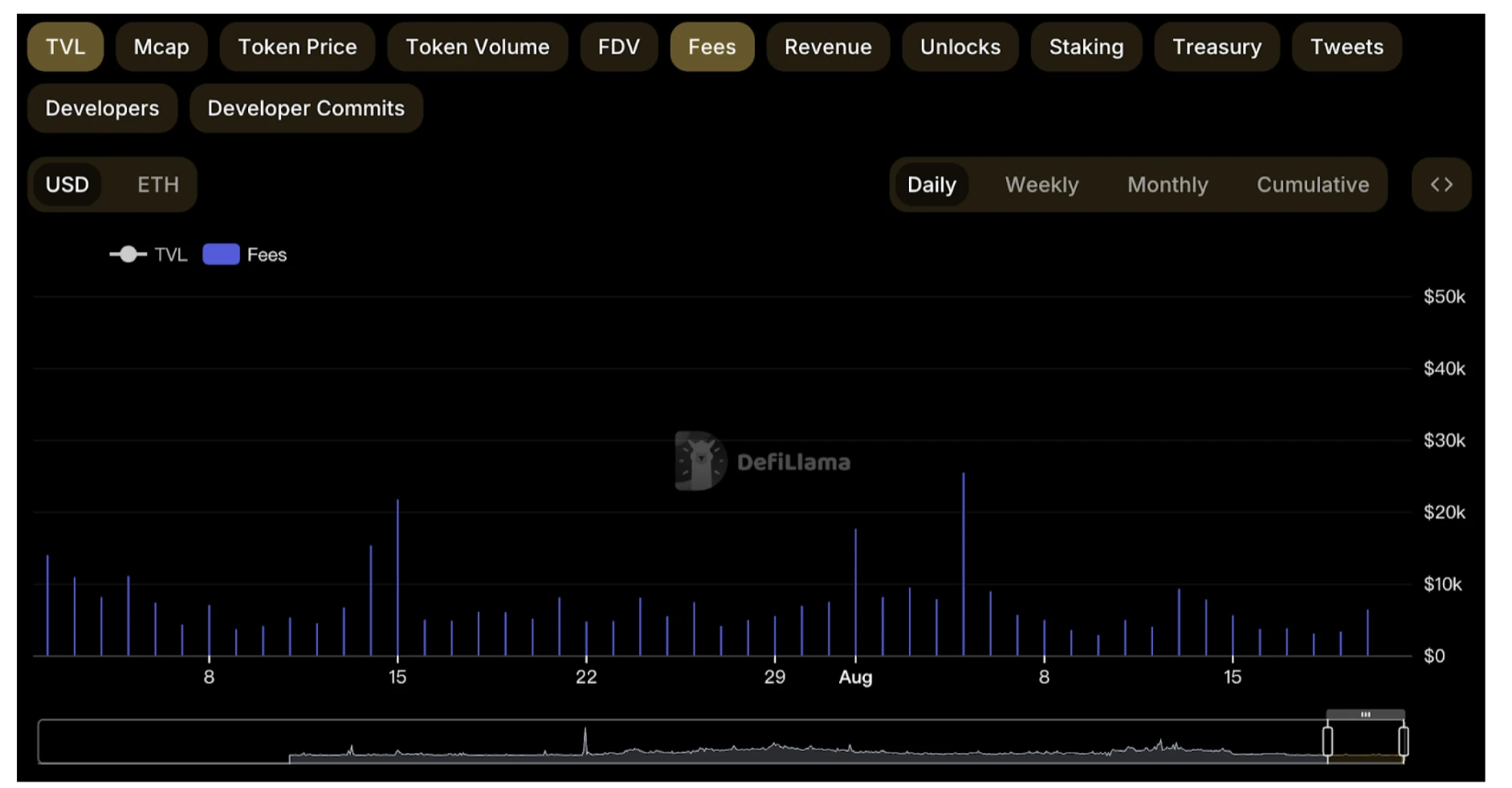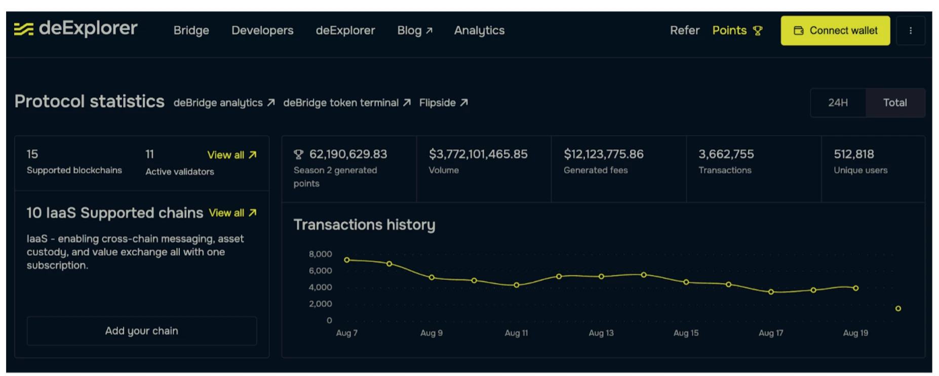 deBridge:图表显示,deBridge 的费用保持在稳定水平,较高的平均费用意味着其产品的稳定性和盈利能力是持久的。