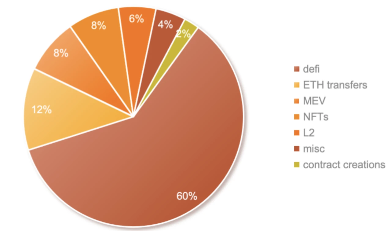 收入来源多元化:DeFi(60% )、ETH 转账(12% )、MEV(8% )和 NFT(8% )等多个领域均衡发展。