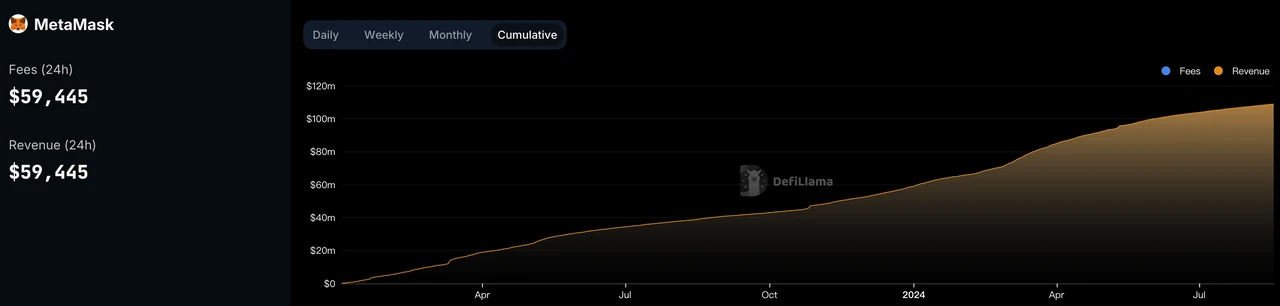 钱包作为公链用户活动的基础设施,其 Gas 费贡献不仅反映了链上真实用户活跃度,还是衡量公链生态健康程度的关键指标。数据(图 1-4)显示,作为当前最广泛应用的链上钱包项目,MetaMask 在 Ethereum 生态中独占鳌头,近 30 天内贡献 Gas 费 291 万美元(燃烧 94 万美元),占整个 Ethereum 链上 Gas 费的约 2% ,彰显了钱包赛道在公链生态中的重要地位。