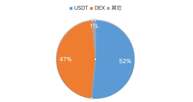 DEX(去中心化交易所)活动占据了绝对主导地位,高达 86% 的份额