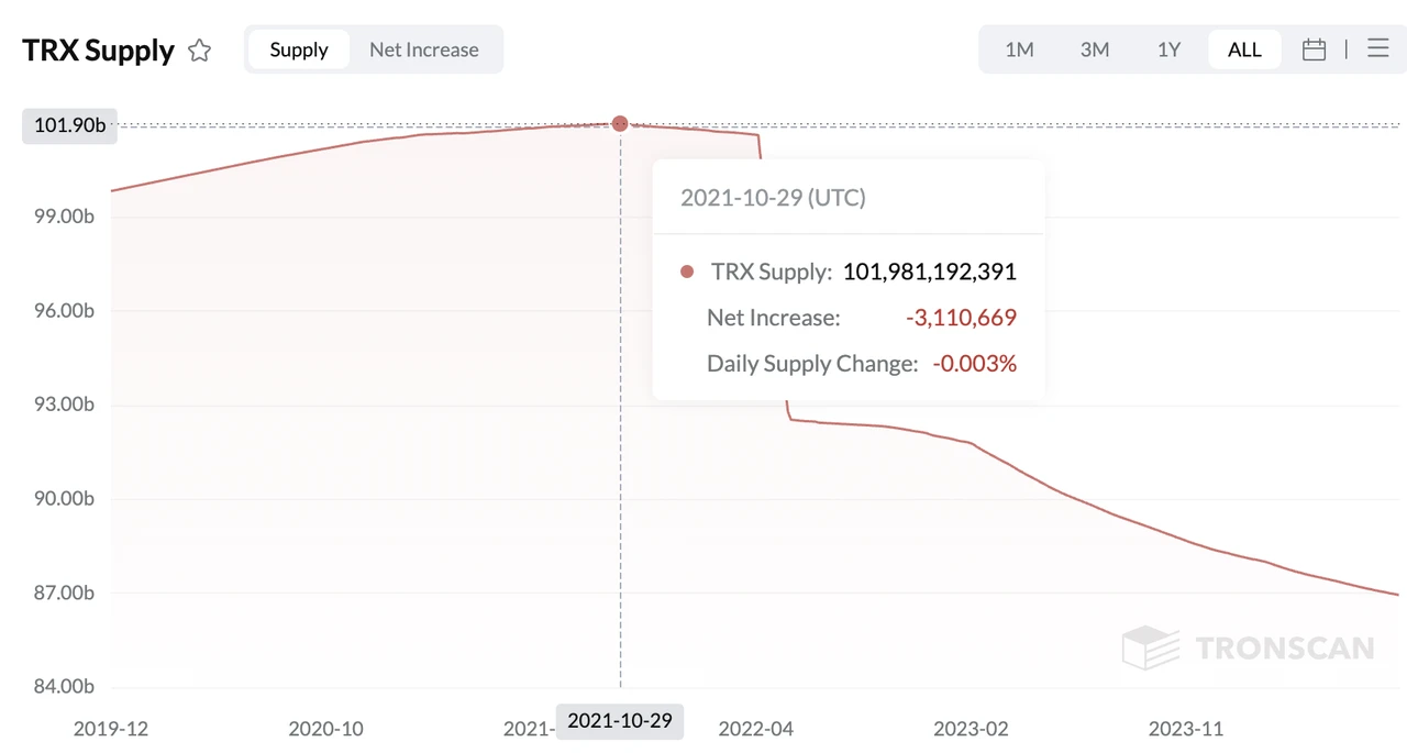 用户在带宽或能量不足时需烧毁 TRX 支付交易资源,促进 TRX 通缩。