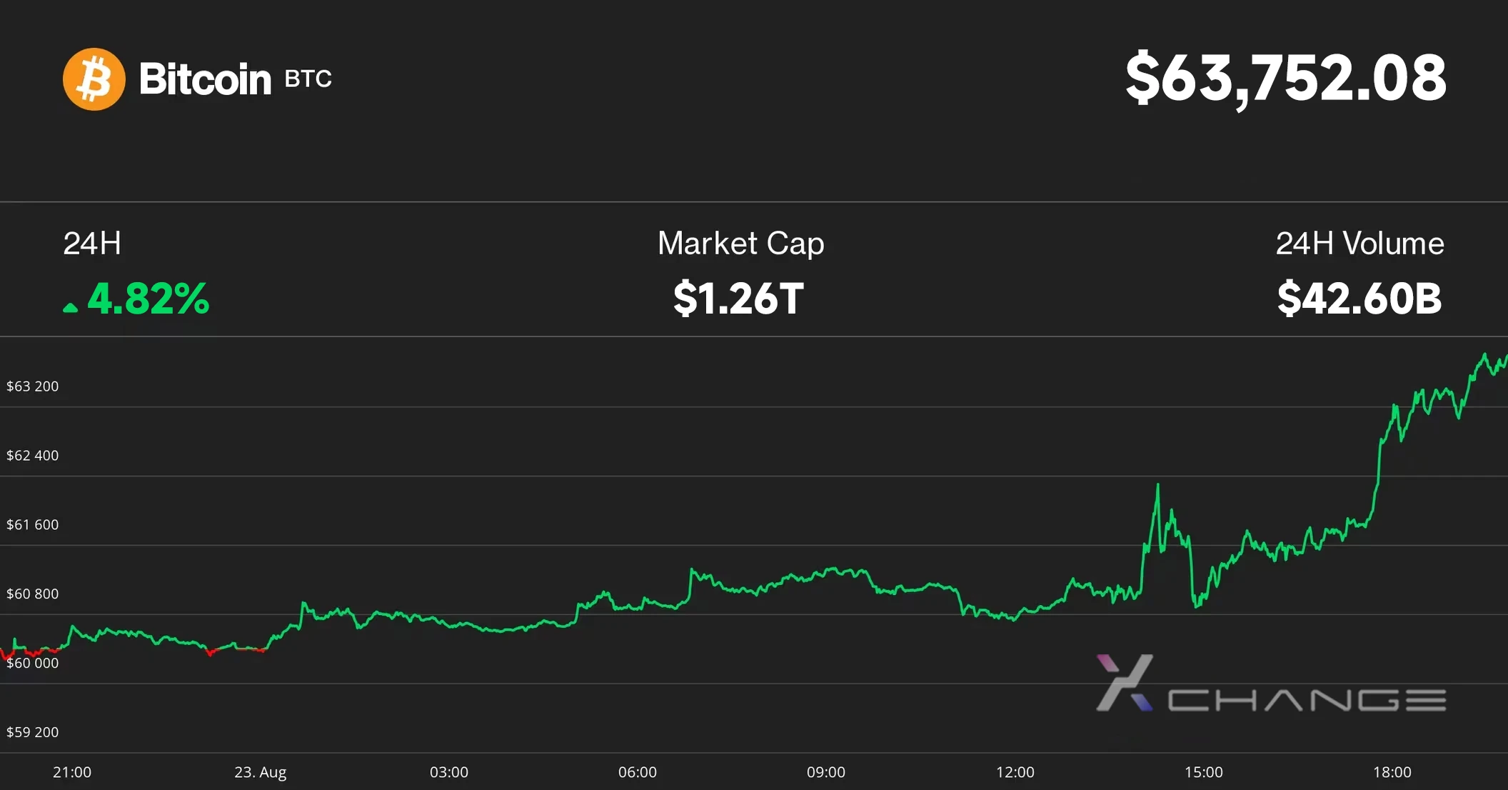 在他于杰克逊霍尔美联储会议上发表讲话后,比特币立即上涨。
