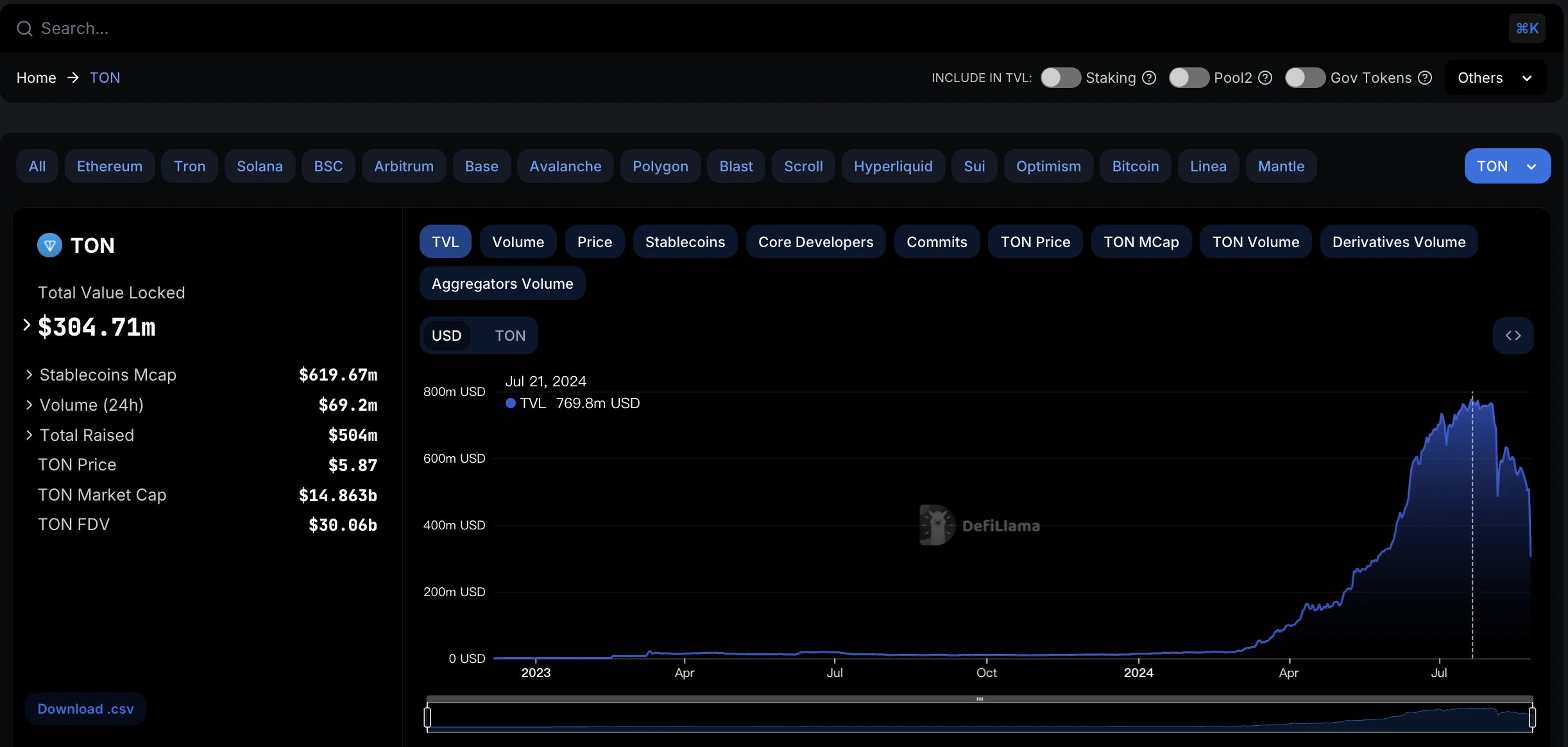 TON TVL 表现