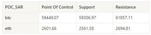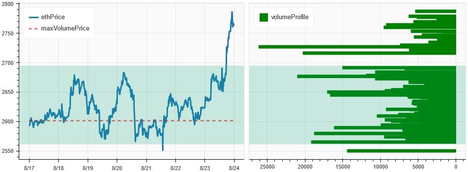 表格显示 BTC 与 ETH 过去一周中每周的密集成交区间