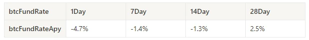 过去一周 BTC 资费平均年化收益为-1.4% ,合约杠杆情绪在转为悲观。