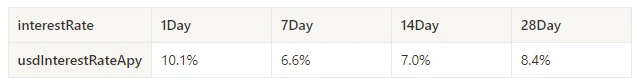 过去一周 USD 放贷年化收益平均为 6.6% ,短期利率升至在 10.1% 。
